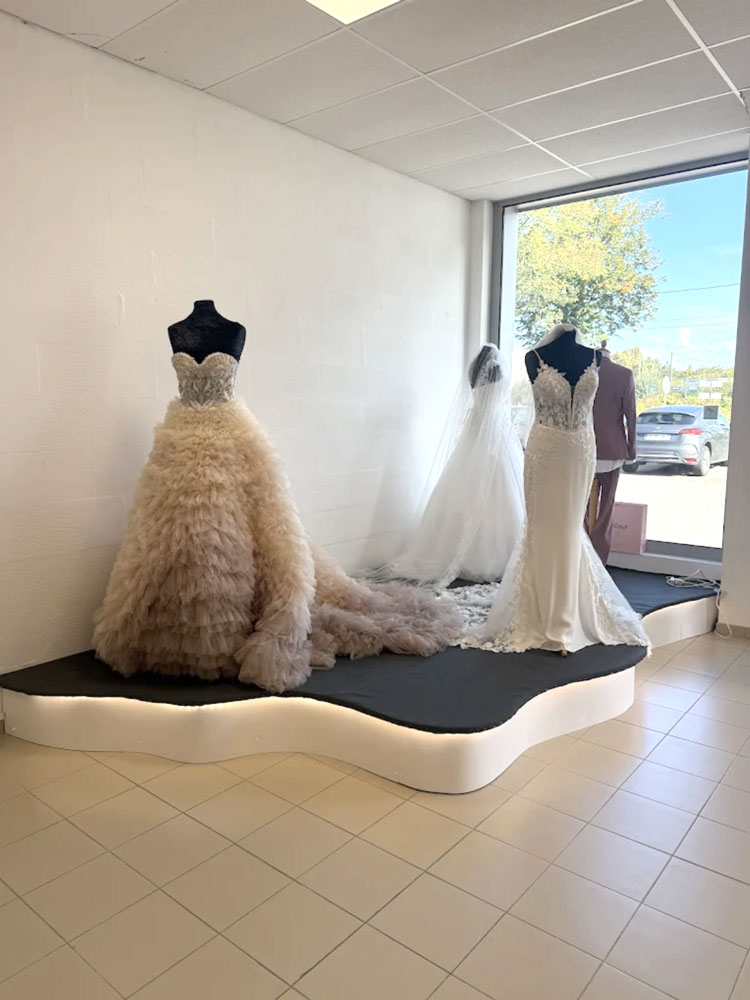 Découvrez un lieu entièrement dédié à l’élégance, où chaque détail a été pensé pour sublimer vos plus beaux moments. Robes de mariée, costumes raffinés et tenues de soirée uniques : notre collection vous accompagne dans toutes vos grandes occasions.